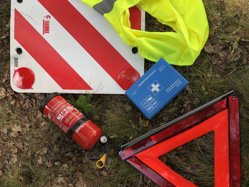 Warto również zadbać o bezpieczeństwo! Zabierając ze sobą rowery na bagażniku pamiętajcie o ostrzegawczym kwadracie w czerwono – białe pasy. Na terenie naszego kraju możliwe, że policja nie zwróci na jego brak uwagi, ale już u naszych zachodnich sąsiadów oznaczenie takie jest koniecznością, a za jego brak grozi mandat. Kamizelki odblaskowe to kolejny punkt – w niektórych krajach Europy jest obowiązek posiadania tylu kamizelek ilu pasażerów jest na pokładzie. Dlatego ważne, aby przed wyjazdem sprawdzić przepisy obowiązujące w krajach, w których będziemy się znajdować. Konieczna będzie również Wasza apteczka! Poza podstawową wersją z jałowymi opatrunkami i bandażami warto mieć ze sobą środki przeciwbólowe czy inne lekarstwa na najczęstsze dolegliwości oraz te, które musicie stale przyjmować. Pamiętajcie również o środkach na owady! Dla siebie i czworonożnych przyjaciół, których zabieracie na wakacje kamperem.