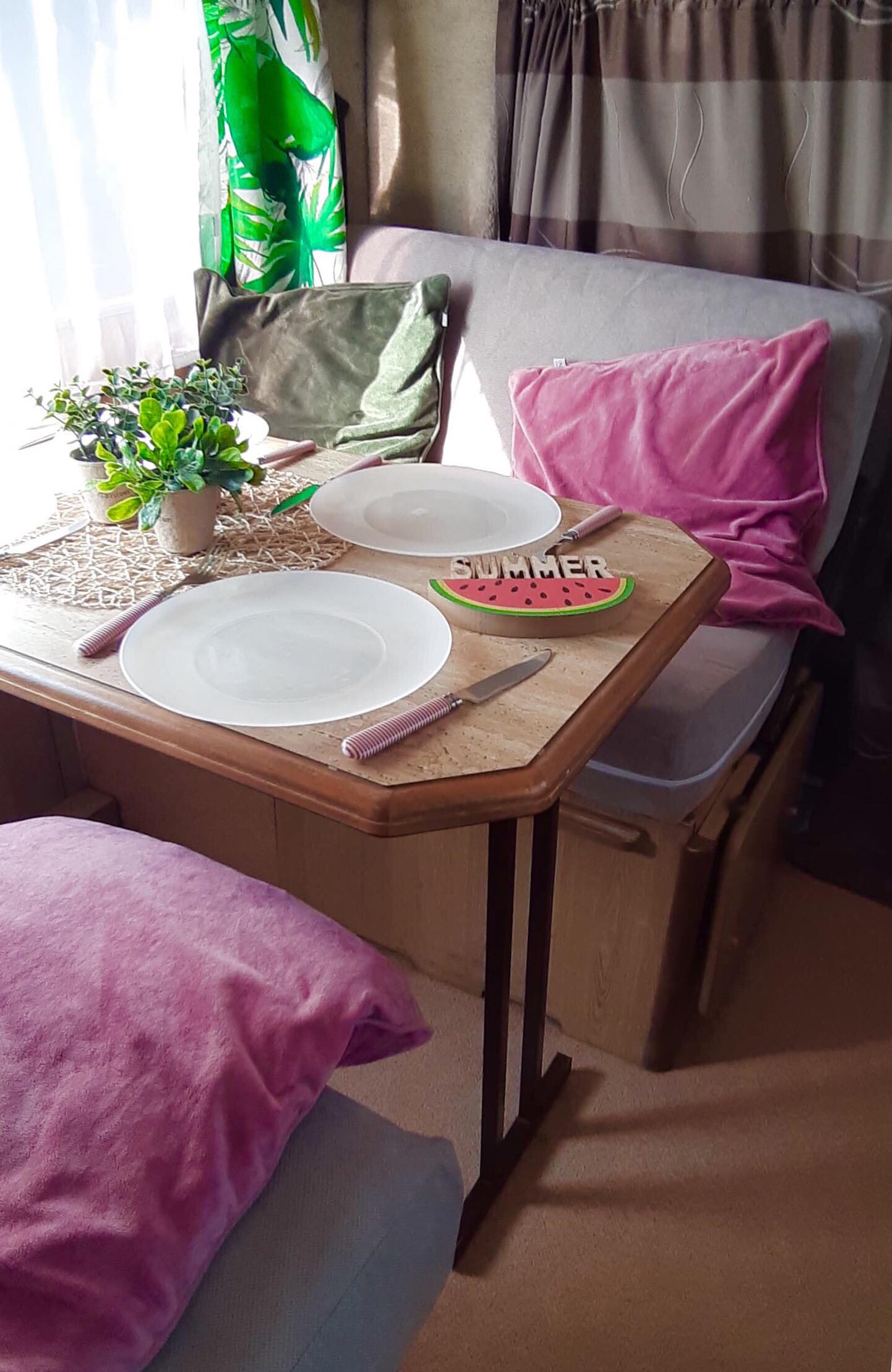 Poza swoimi rzeczami osobistymi – niewiele: pościel i ręczniki! Poza tym kampery mają kompletne wyposażenie w tym stolik i krzesełka turystyczne. Zastanawiasz się jak zapakować się na wyjazd kamperem? Zajrzyj do artykułu na naszej stronie.