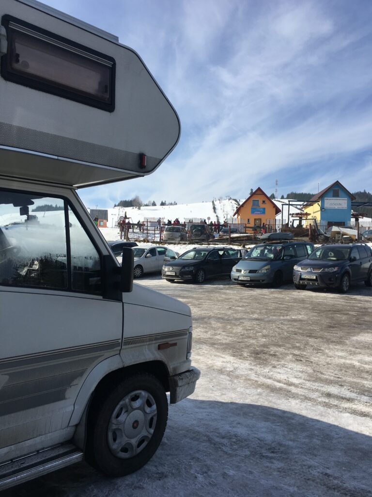 Wyjazd kamperem na narty okazał się być super sprawą. Sprzęt w schowku pod długą kanapą, ciuchy błyskawicznie wysuszone nad grzejnikiem, kamper zaparkowany na parkingu pod stokiem. Żyć nie umierać.